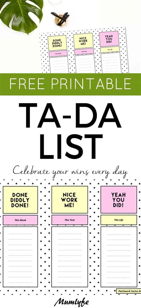 Free Printable TaDa List